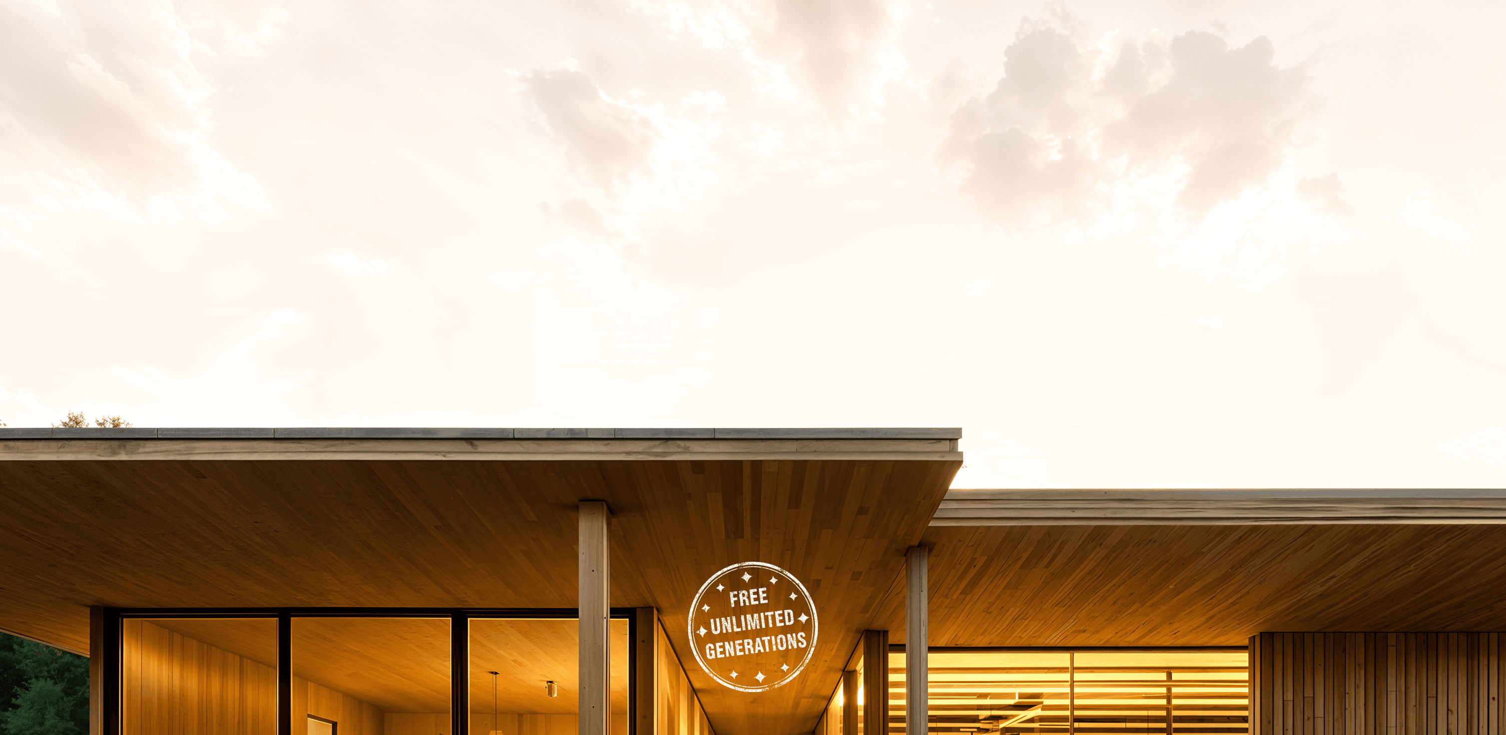 Upload your designs, and create beautiful, accurate images of your work. Taking your basic forms or well resolved designs, Gendo will tightly adhere to your intent, and add materiality, lighting and detailing. Not designed by AI, but AI to help you design.