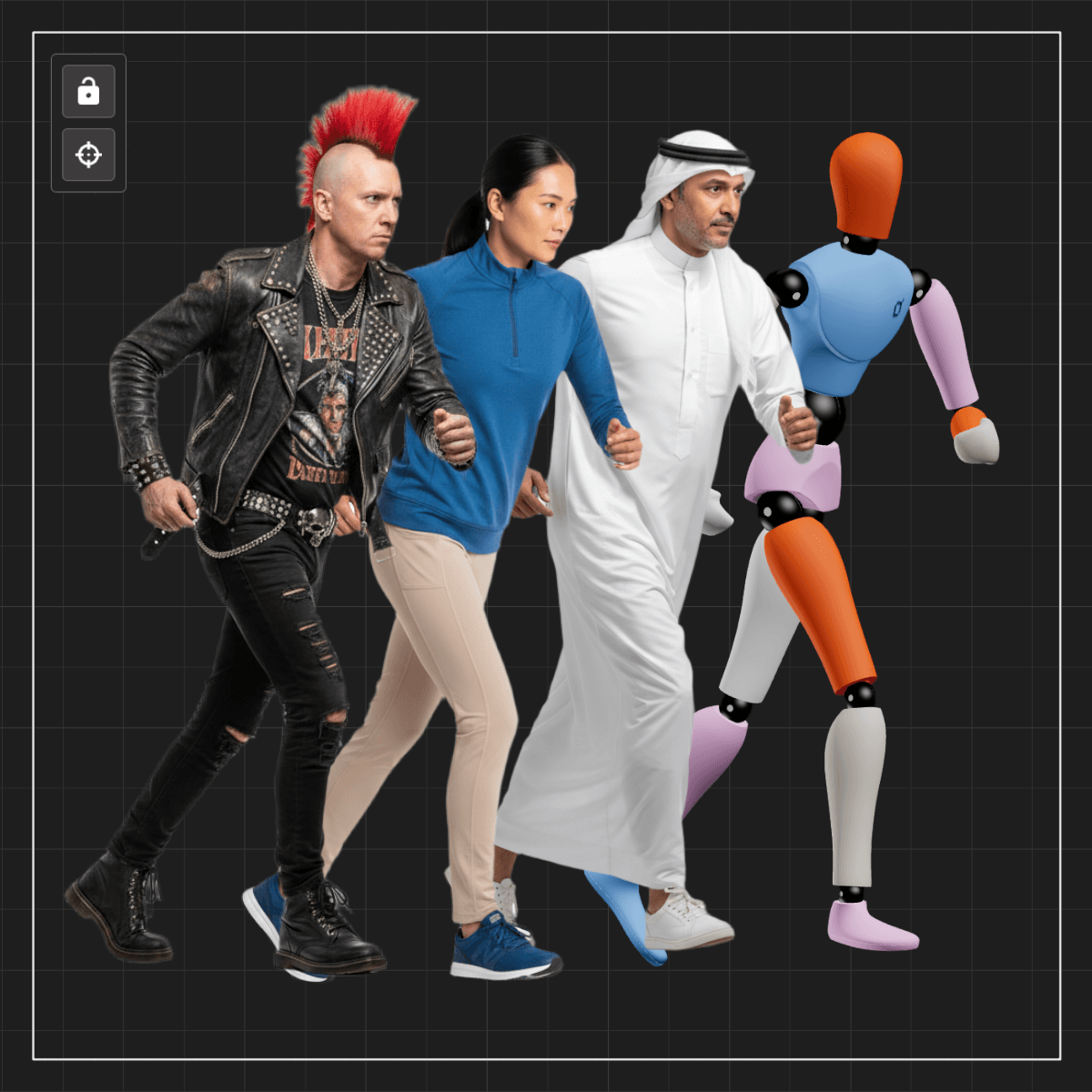 Open the tool, adjust the 3D mannequin into a walking pose, and generate a person walking PNG. This avoids wasting time searching through stock sites for a matching walking person PNG.