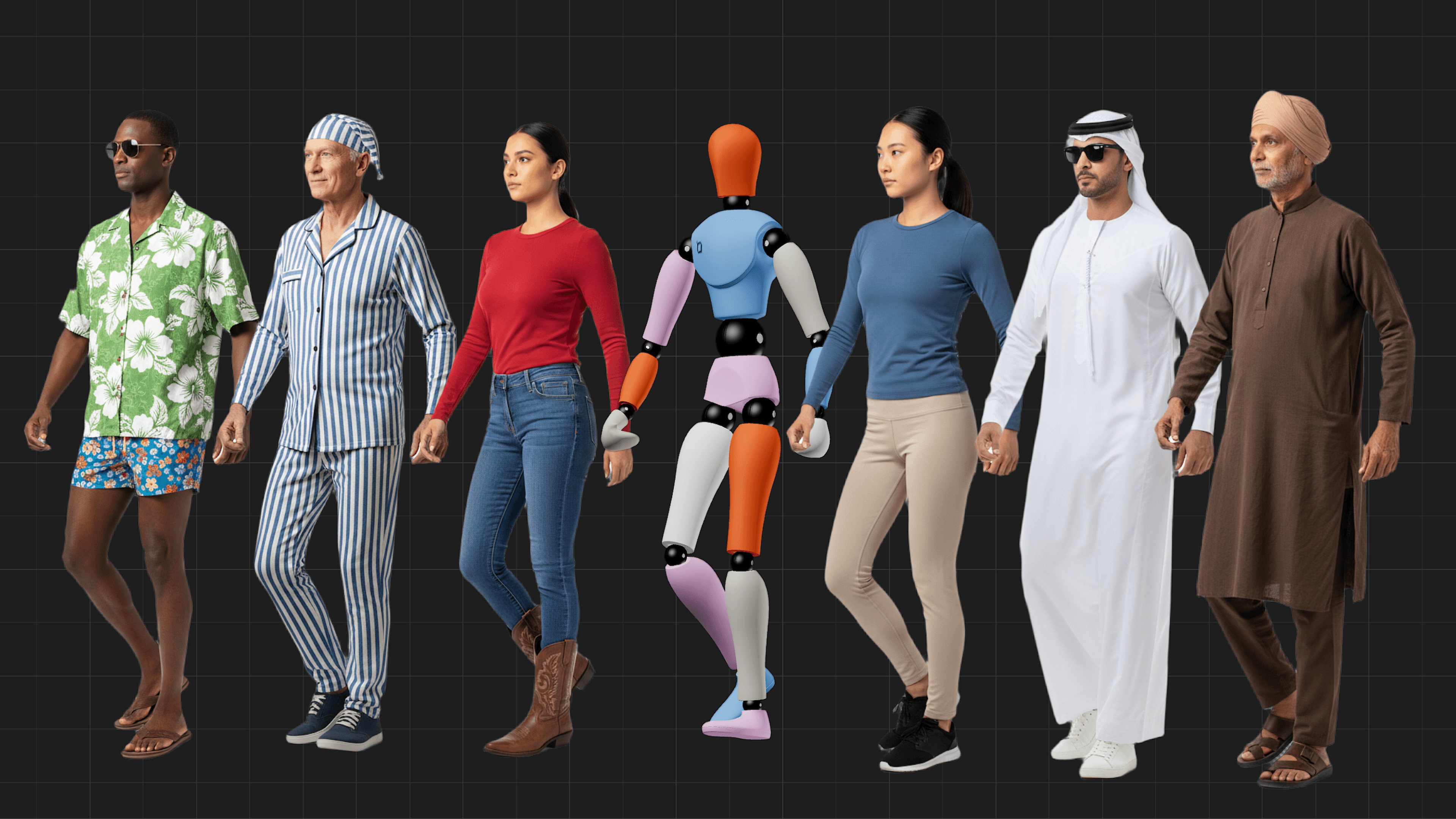 Custom cutouts make your renders feel specific and authentic. Instead of generic PNG people, you can design figures that fit your scene exactly. For example: